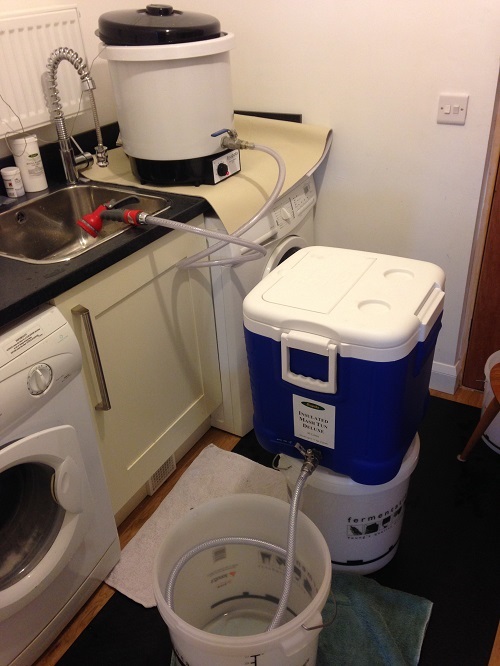 First stages went well, with a trip out to get some items for sparging during the 90 minute mash.
